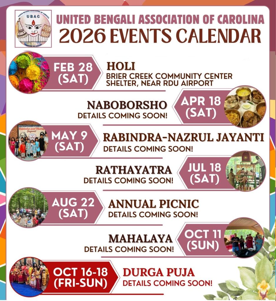 United Bengali Association of Carolina (UBAC), a 501(c)(3) non-profit, promotes Bengali culture through arts, music, and events for the Indo-American community in North Carolina and nearby states. An online platform will showcase its mission, vision, and activities, fostering greater engagement.
